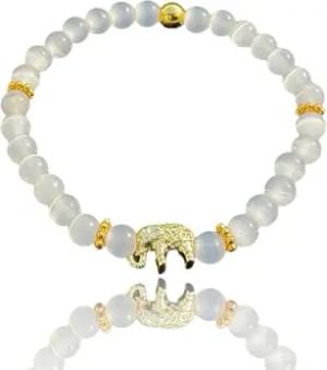 - Echtes Selenit Perlenarmband Elefant mit vergoldeter Perle - Hochwertiges Edelsteinarmband handgefertigt in Deutschland - inklusive Geschenkbox -Cateye