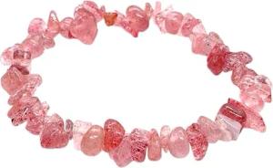 Edelstein Splitterarmband 18cm aus Erdbeerquarz - Der gute Laune Stein – Brasilien - handgefertigt - elastisch - höchste Qualität - in Organzasäckchen