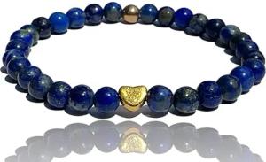 - Elegantes Perlenarmband aus Lapislazuli - Hochwertiges Edelsteinarmband mit vergoldeter Perle und vergoldetem Herz - handgefertigt - Schutzstein - mit Geschenkbox (Perlen 4 mm)