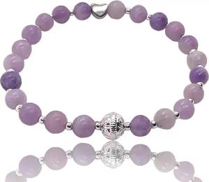 - Elegantes Perlenarmband aus Lepidolith - Hochwertiges Edelsteinarmband mit Silberperlen und silbernem Herz - handgefertigt - in Geschenkbox (Perlen 4 mm)