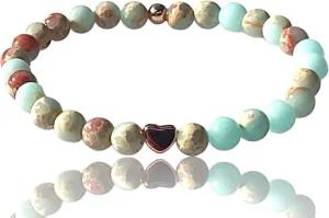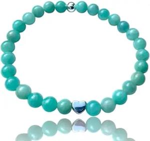 - Naturstein Perlenarmband aus Amazonit Ice - Hochwertiges Edelsteinarmband mit 925 Silberperle und versilberten Edelstahlverzierungen - handgefertigt - in Geschenkbox (6 mm mit Herz)