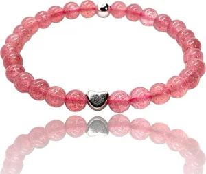 - Naturstein Perlenarmband aus Erdbeerquarz - Hochwertiges Edelsteinarmband mit 925 Silberperle und versilbertem Edelstahlherz - handgefertigt - in Geschenkbox (Perlen 6 mm)
