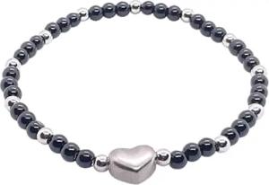 - Obsidian Perlenarmband mit Edelstahlherz und Edelstahlperlen - Hochwertiges Edelsteinarmband handgefertigt inclusive edler Geschenkbox und Edelsteinkarte