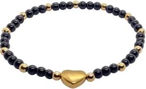 - Obsidian Perlenarmband mit Messingherz und Messingperlen - Hochwertiges Edelsteinarmband handgefertigt inclusive edler Geschenkbox und Edelsteinkarte