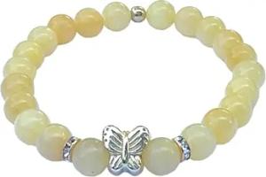 - Perlenarmband aus gelber Jade - Hochwertiges Edelsteinarmband - handgefertigt - in edler Geschenkbox - Glück und Freude - vergoldete Edelstahlperle (8mm mit Schmetterling)