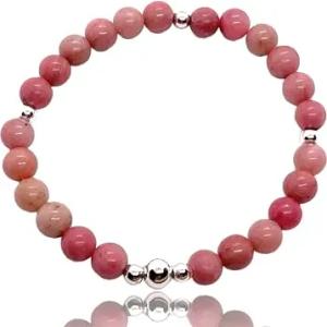 Rhodonit Edelstein Perlenarmband mit 925 Silberperlen, inclusive edler Geschenkbox - Seelentröster (Perlen 6 mm)