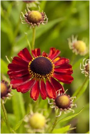 Pulsatilla vulgaris 'Pinwheel Rot', Küchenschelle, rot, ca. 9x9 cm Topf