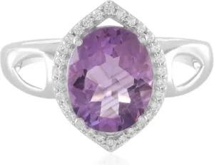 Amethyst Silberring Sambia 2,115 Ct Ovalschliff 925er Sterling Silber Ring mit 30 Zirkonen Kambodscha 0,189 Ct Eleganter Ring Größe 18-20 Violett