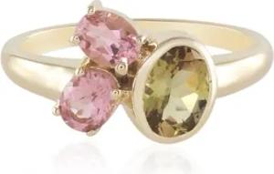 Gelber Tansanit Goldring 375er Gelbgold mit 0,667ct nicht erhitztem ovalem Tansanit und 2 pinkfarbenen Nigerianischen Turmalinen - Eleganter moderner Damenschmuck