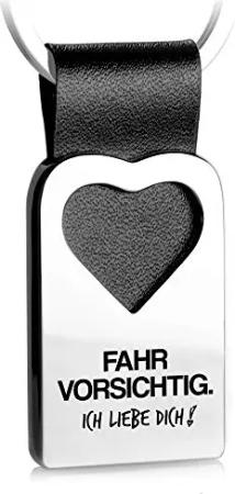 Herz Schlüsselanhänger mit Gravur aus Leder - Auto Glücksbringer Anhänger für Ihren Lieblingsmensch - Fahr vorsichtig Ich liebe dich