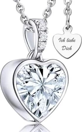 Herz Halskette Silber 925 / Vergoldet Halskette Damen I Love You Kette Silberkette Herz Anhänger Schmuck Geschenke Frauen Freundin Sie zum Geburtstag Hochzeitstag Liebesgeschenk, Zirkonia