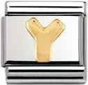 Charm Aus Goldfarbenem Messing In Form Des Buchstabens Y Mit Glassteinchen, Frau, Größe: U