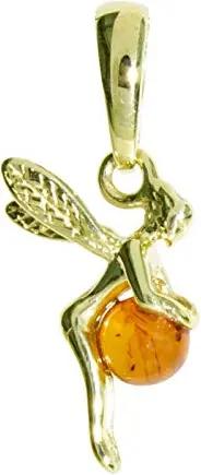 Anhänger - Elfe - Silber 925/000, vergoldet mit Bernstein