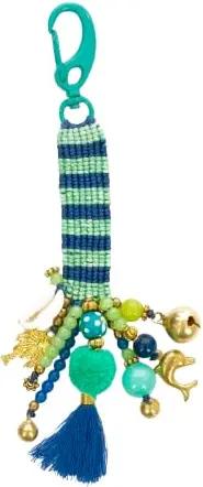 Schlüsselanhänger Jacky blau-grün handgeknüpft ca. 15 cm lang mit Perlen Bommeln und Anhängern