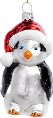 Pinguin mit Weihnachtsmütze besondere Weihnachtskugel Glas Christbaumschmuck Deko Figur Weihnachten Anhänger Ornament - Meisterstücke - BS760