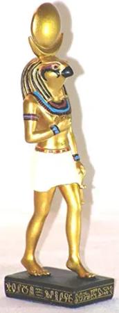 Ägyptischer Gott Horus mit Sonnenscheibe stehend goldfarbend 21cm