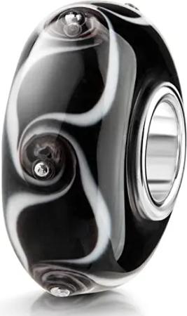 3D Glas Bead Anhänger schwarz weiß Linien für Beads Armband mit Silber Hülse 46