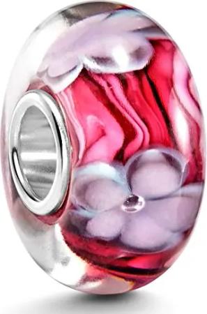 Glas Bead Charm Anhänger pink lila Blumendesign für Beads Armband 967