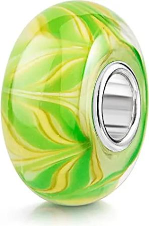 Glas Bead Charms Anhänger grün gelb Muster mit 925 Silber Hülse #1470-Grün
