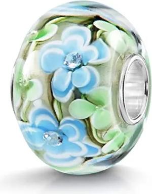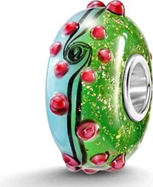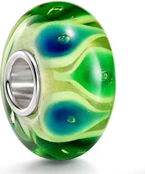 Glas Beads Charms Silber 925 Blüten grün weiß für Damen 251