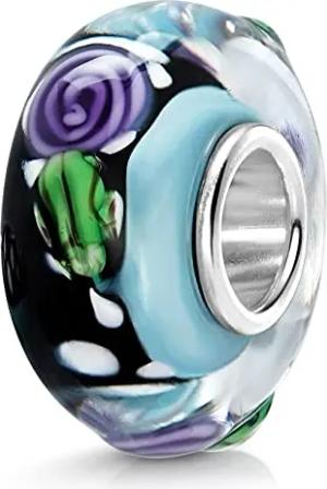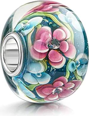 Materia XXL Glas Bead Blumen Charm Silber 925 blau pink 1471
