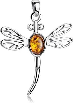 MATERIA 925 Silber Kettenanhänger Libelle 25x34mm - Damen Anhänger Bernstein für Halskette #KA-39