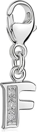 Materia Buchstabe F Anhänger Silber 925 mit 3 Zirkonia - Alphabet Charms C56