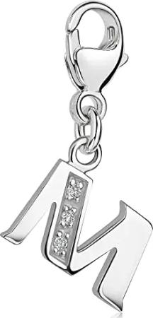 Materia Buchstabe M Anhänger Silber 925 mit 3 Zirkonia - Alphabet Charms C63