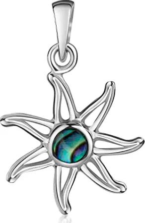 Materia Damen Anhänger Silber 925 Sonne mit Perlmutt grün KA-506-Grün_Ohne Kette