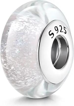 Materia Glas Bead Anhänger Silber 925 weiß Schimmer mit Gewinde 1145