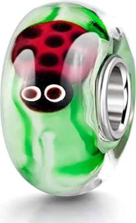 Materia Glas Bead Marienkäfer Glücksbringer - Kinderschmuck Glasperle grün rot für Armband 1006