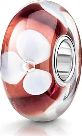 Materia Glas Beads altrosa weiß Blumen Charms Anhänger 925 Silber 1138