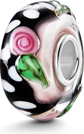 Materia Glas Charm 3D Rosen rosa schwarz - Damen Beads 925 Silber 1609-Creme_Rosa