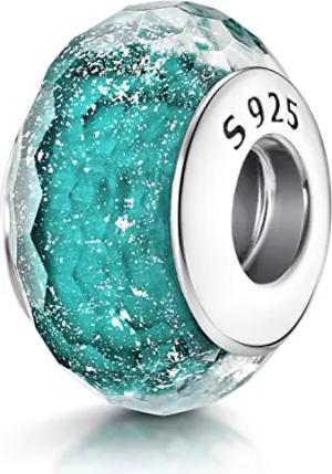 Materia Glas Charm Anhänger Silber 925 türkis mit Glitzer facettiert 1195