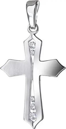 MATERIA Kleiner Kreuzanhänger Silber 925 mit Zirkonia matt rhodiniert für Damen Mädchen inkl. Geschenk-Box KA-115-ohne Kette