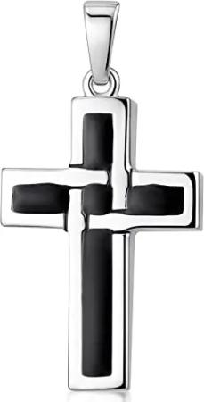 MATERIA Kreuz Herren Anhänger Silber 925 LEON - schwarz emailliert gebürstet für Halskette 15x28mm mit Box #KA-299