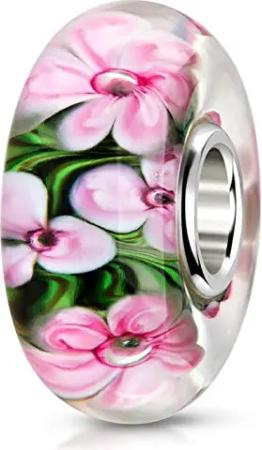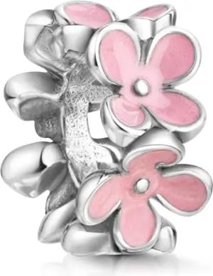 Spacer Bead 925 Sterling Silber Zwischenelement mit rosa Blumen 36