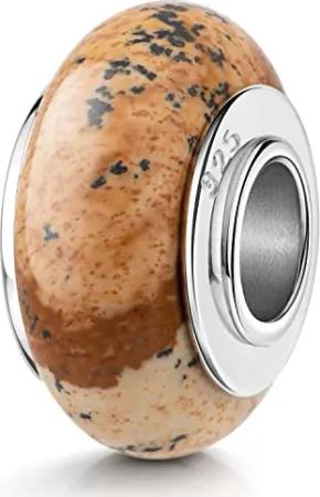 Materia Naturstein Charm Anhänger Silber 925 braun - Edelstein Bead Landschaftsachat 330