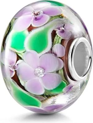 Materia XXL Glas Beads - Charms Anhänger Silber 925 Blumen lila grün 1295