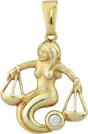 Damen Anhänger Waage 14 Karat (585) Gelbgold Gold weiß Zirkonia 0907892