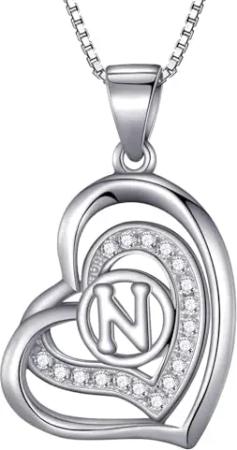 Damen Halskette Herz Buchstabe N 925 Silber rhodiniert mit Zirkoniasteinen weiß 46 cm