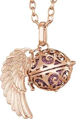 Halskette Damen roségold Edelstahl 70 cm mit roségoldenem Anhänger Engelsflügel und Klangkugel Silber Ø 16 mm in Schmuckbeutel