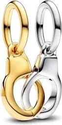 Moments Aufklappbarer & teilbarer Handschellen Charm-Anhänger aus Sterling Silber mit vergoldeter Metalllegierung, Kompatibel Moments und ME Armbänder, 763435C00
