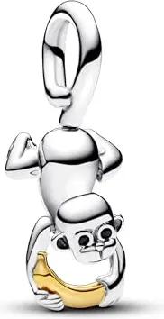 Moments Bicolor Bicolor Beweglicher Affe Charm-Anhänger aus Sterling Silber mit vergoldeter Metalllegierung, Kompatibel Moments und ME Armbändern,763343C01