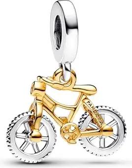 Moments Bicolor Fahrrad mit Drehenden Rädern Charm-Anhänger aus Sterling Silber mit vergoldeter Metalllegierung und Zorkonia, Kompatibel Moments Armbändern, 763354C01