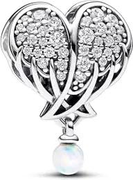 Moments Funkelnde Engelsflügel & Herz Charm aus Sterling Silber mit Zirkonia, Kompatibel Moments Armbändern, 792980C01