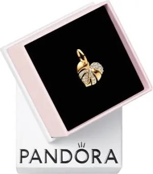 Moments Funkelndes Monstera Blatt Charm-Anhänger aus Sterling Silber mit vergoldeter Metalllegierung und Zirkonia, Kompatibel Moments und ME Armbändern, 763349C01