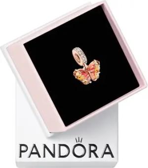 Moments Rosafarbener & Gelber Murano-Glas Schmetterling Charm-Anhänger aus Sterling Silber mit rosévergoldeter Metalllegierung, Kompatibel ME und Moments Armbändern, 782698C01