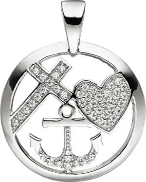 Anhänger Glaube Liebe Hoffnung im Kreis 925 Silber mit Zirkonia weiß Damen