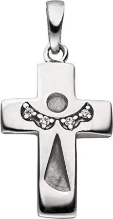Anhänger Kreuz mit Engel Schutzengel Silhouette aus 925 Silber mit 4 Zirkonia